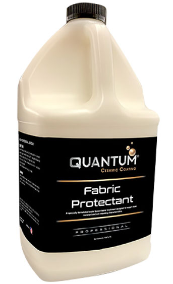 Description: Quantum Ceramic Fabric Protectant is specially formulated to provide long-lasting protection for all fabric surfaces inside your vehicle. Its advanced ceramic formula bonds to fabric fibers, creating a hydrophobic barrier that repels liquids and prevents stains from penetrating deep into the material. This invisible shield also blocks harmful UV rays, reducing fading and discoloration caused by sun exposure. Quantum Ceramic Fabric Protectant is easy to apply and dries quickly, leaving behind no residue or greasy finish, ensuring a natural look and feel to your fabrics.